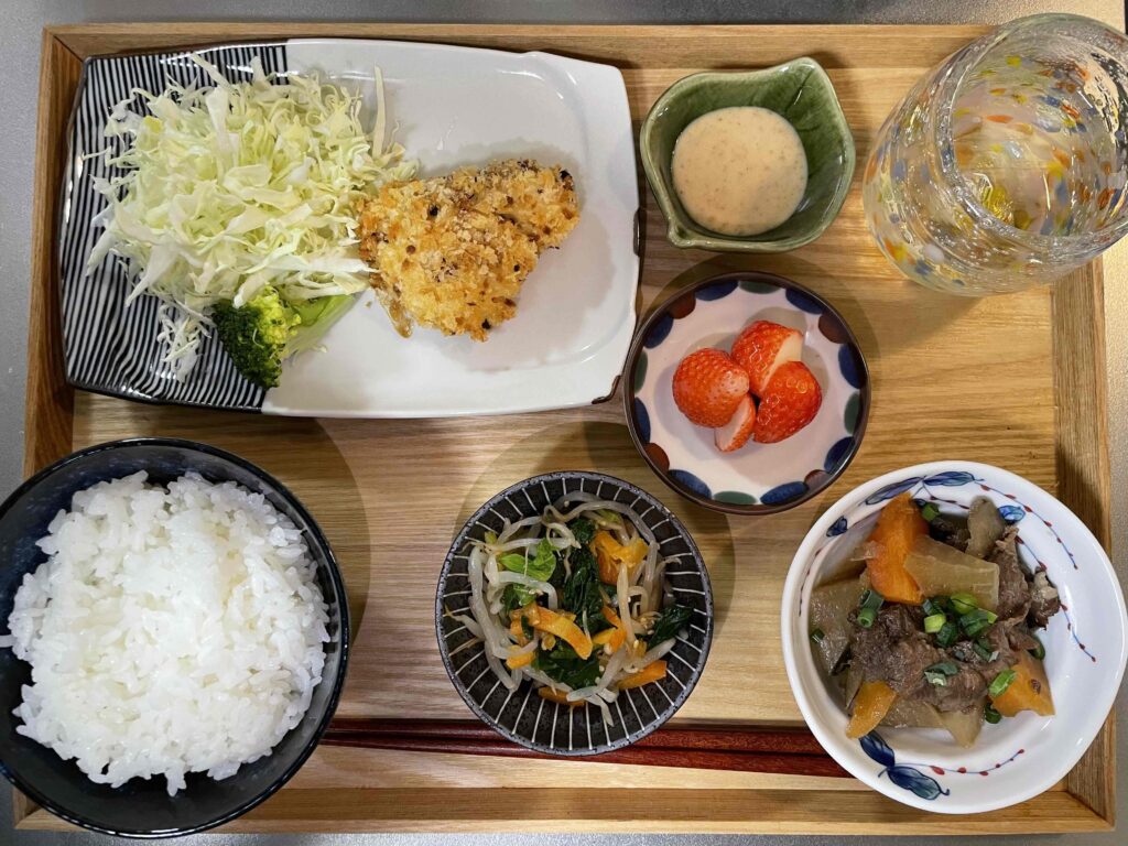 揚げ物の日は、コレステロールや中性脂肪を意識して献立を考えています。