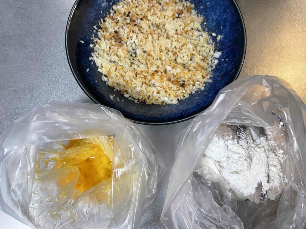 タラは袋に入れ、塩こしょうと小麦粉を振ります。