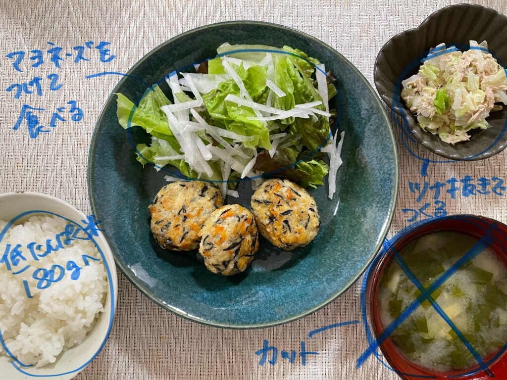 ・キャベツ80g・大根20g・ツナ20g・マヨネーズ10g・塩コショウ少々