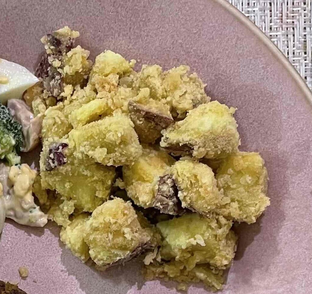 ◎蒸したさつま芋にきな粉と砂糖を和えただけの料理です。子供に人気のメニューでした。