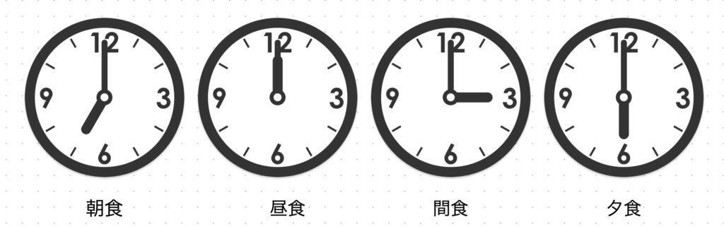 朝昼晩の食事をほぼ同じ時間帯にすることで、血糖値の安定はもちろんですが、体内時計や代謝のリズムも乱れにくくなります。生活のリズムや活動量に応じて間食を取り入れることもできますが、間食の時間帯も決めておくと良いです。