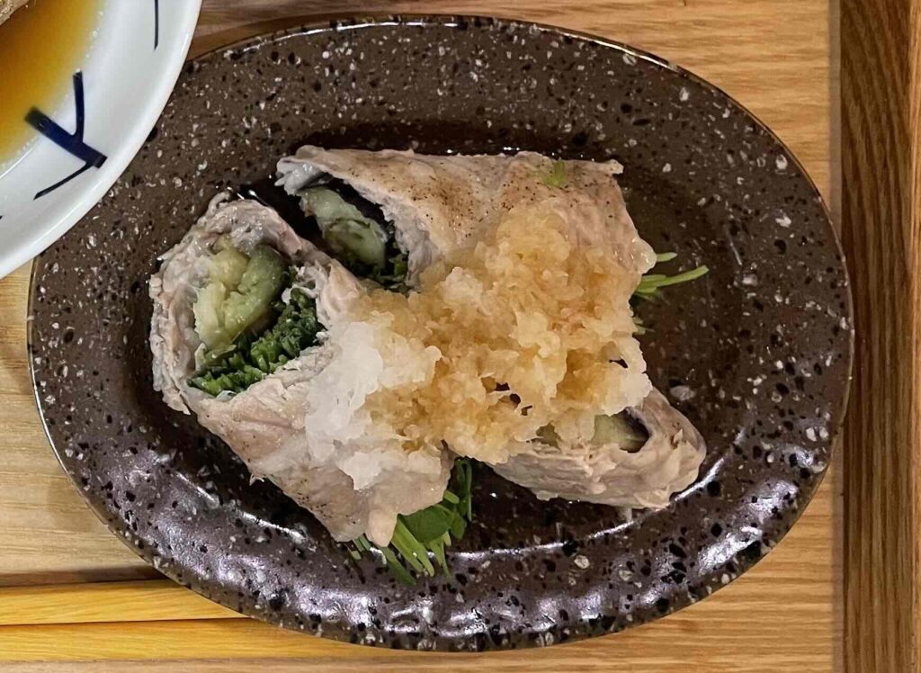 ・豆苗となすの豚肉巻き