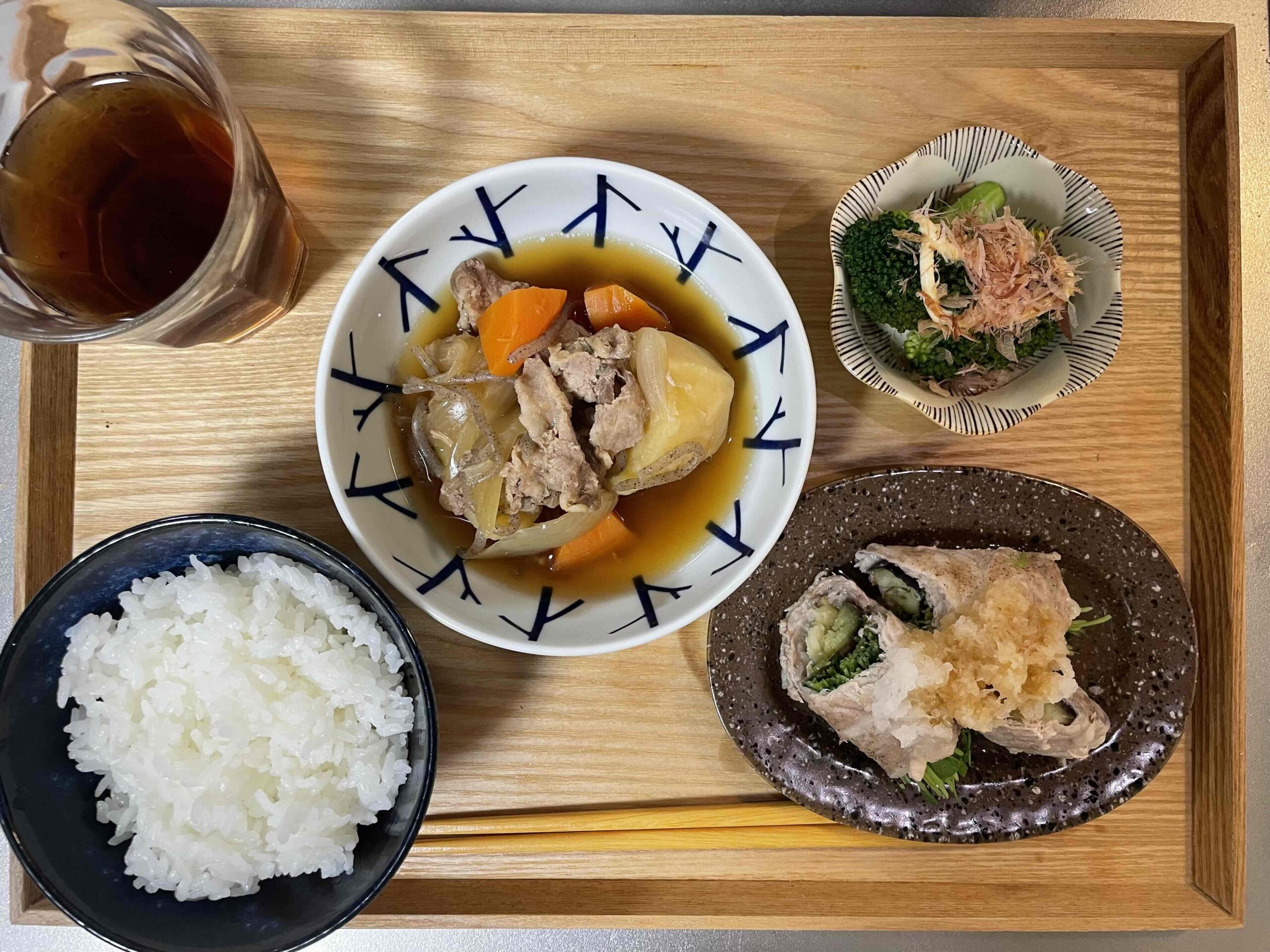 本日のメインは肉じゃがです。煮物料理の時は汁物は極力避けて、塩分の摂りすぎにならないよう気をつけています!